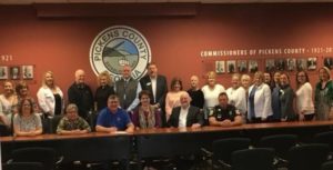 A large gathering of child advocates attended the signing of the proclamation by Pickens County Commissioner, Robert Jones, declaring April as Child Abuse Awareness month.