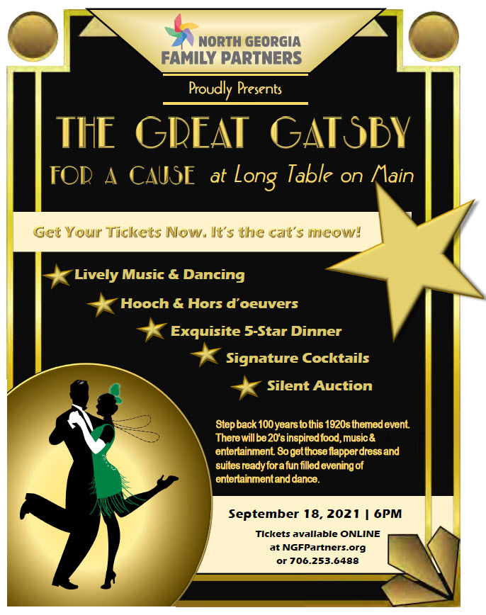 The Long Table on Main Street raises support and awareness for North Georgia Family Partners (NGFP). NGFP’s mission is to prevent child abuse in all forms. By sponsoring this year’s Long Table On Main, you are saying YES to protecting children. Sponsor Form (PDF).